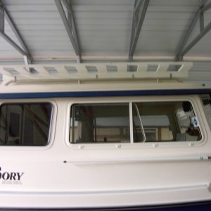 Eye hook replaces original screw. Can be used to hold line for drying towels at anchor. Eye hook $1.10, Kerosene lamp was $2 at the dollar store.